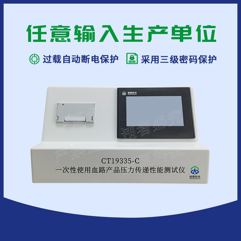 CT19335-C一次性使用血路产品压力传递性能测试仪是专业用于检验一次性使用血路产品压力传递性能的智能检测设备,并广泛应用于医疗器械生产企业、检测所、第三方检测机构、研究院、科研院校、各大高校、医疗器械研发单位等实验室。