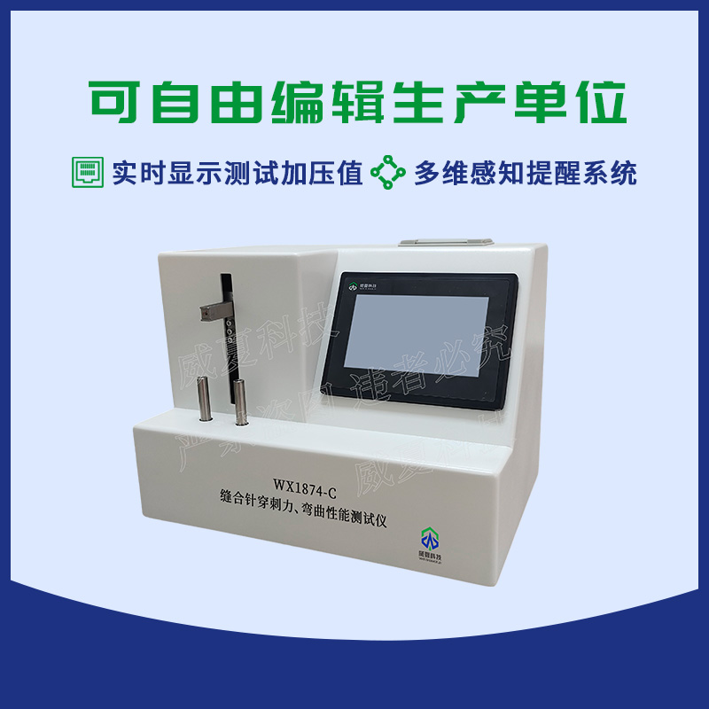 WX1874-C缝合针穿刺力、弯曲性能测试仪是专业用于检验非血管内导管耐液压和真空泄漏性能的智能检测设备,并广泛应用于医疗器械生产企业、检测所、第三方检测机构、研究院、科研院校、各大高校、医疗器械研发单位等实验室。