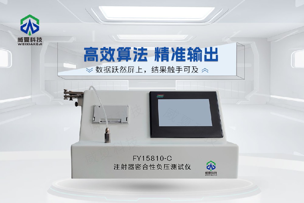 注射器密合性负压性能是评估注射器在抽吸状态下密封能力的重要指标,用于验证针筒与针座、活塞组件在负压条件下是否能保持良好的气密性。测试过程中,将注射器抽至规定负压值并维持一定时间,观察针筒内是否出现持续气泡或压力变化。若无气体泄漏,即表明注射器具有良好的密封性能。该性能直接关系到药液抽吸的准确性与使用安全性,是一次性注射器出厂前的重要检验项目。测试依据《GB 15810 一次性使用无菌注射器》和 ISO 7886 等标准执行,通过专业的注射器密合性负压测试仪可实现自动化检测与数据分析,确保产品符合国家及国际标准要求。检验医用注射器器身密合性负压性能推荐威夏科技自主研发的FY15810-C注射器密合性负压测试仪。