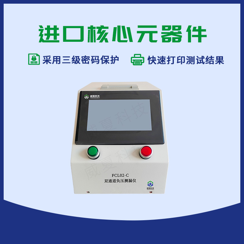 FCL02-C双通道负压测漏仪是威夏科技根据相关的国际标准、国家标准、行业标准、团体标准及企业标准精心研发设计,适用于适用于输液器、输血器、输液针、麻醉包过滤器、管路、导管、快速接头等产品测试。FCL02-C双通道负压测漏仪专业用于产品气密性泄漏性能的智能检测设备,并广泛应用于医疗器械生产企业、检测所、第三方检测机构、研究院、科研院校、各大高校、医疗器械研发单位等实验室。
